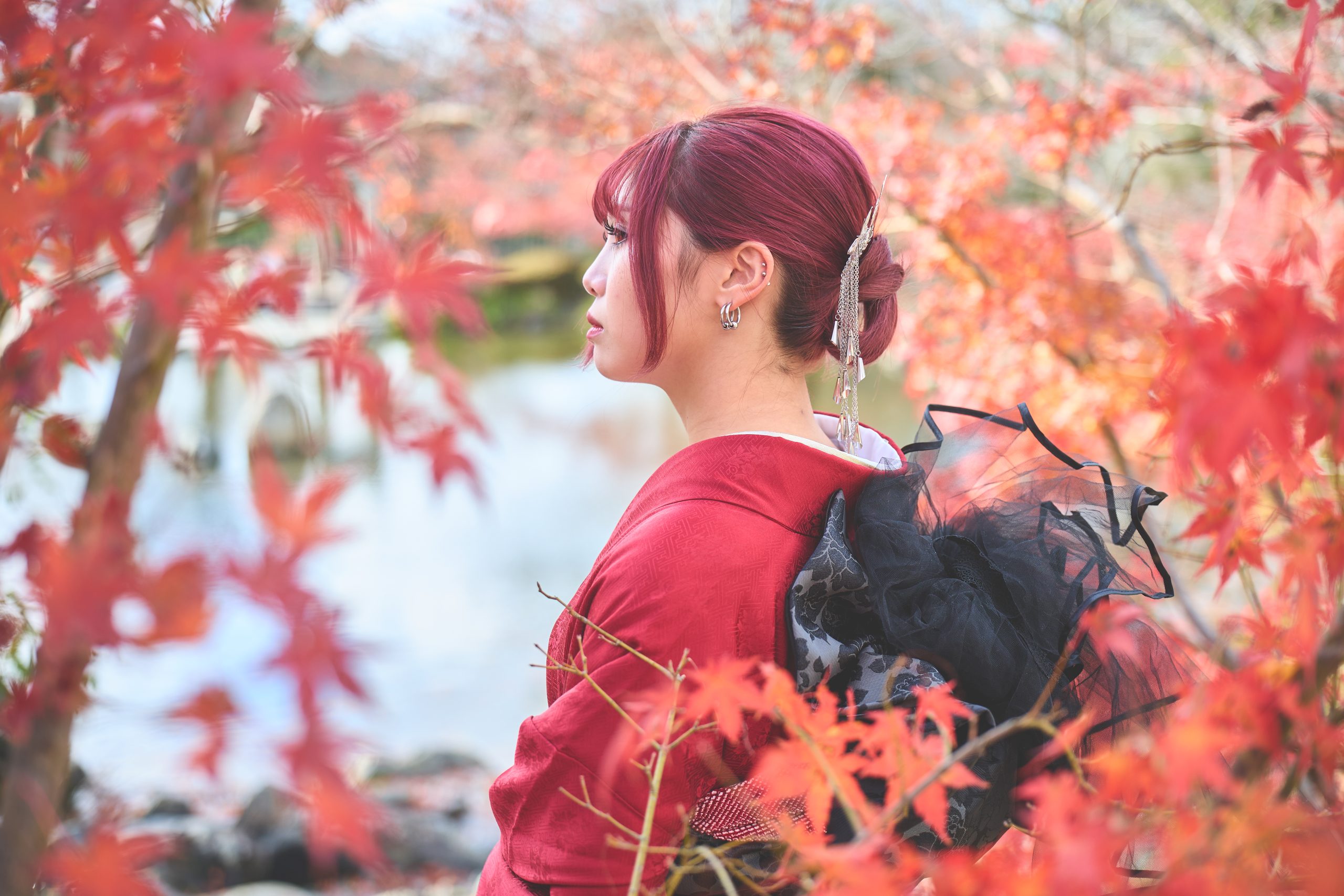 鮮やかな振袖姿のお客様は紅葉の風景にとても映え、和傘を使ったカットや紅葉を背景にしたショットなど、秋の美しさを存分に感じられる写真を残すことができました。